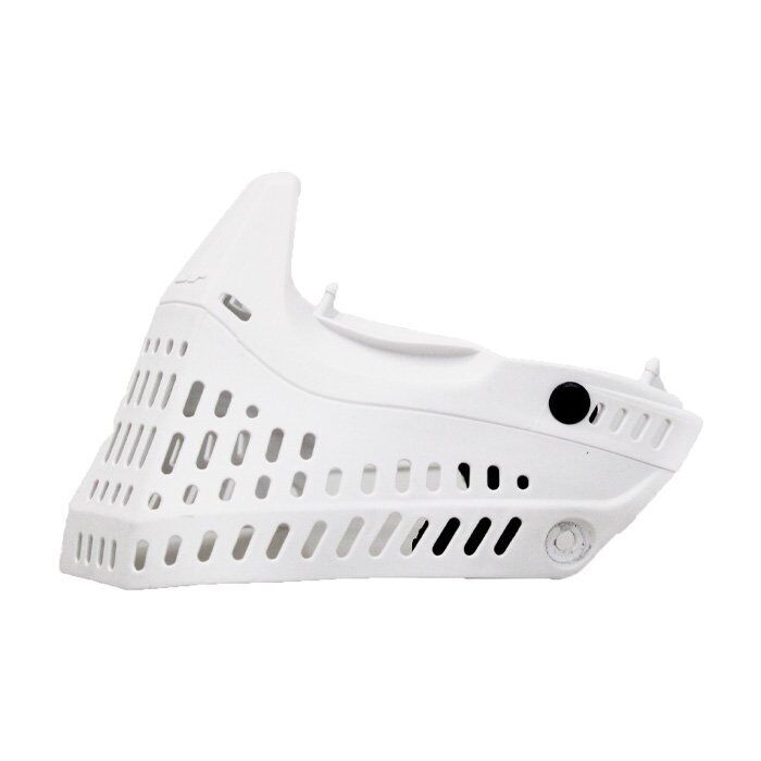 JT Proflex skirt/bottom part assembly with white nose and skirt. Comes with chin strap also. A great way to customize your goggle or build your own setup.